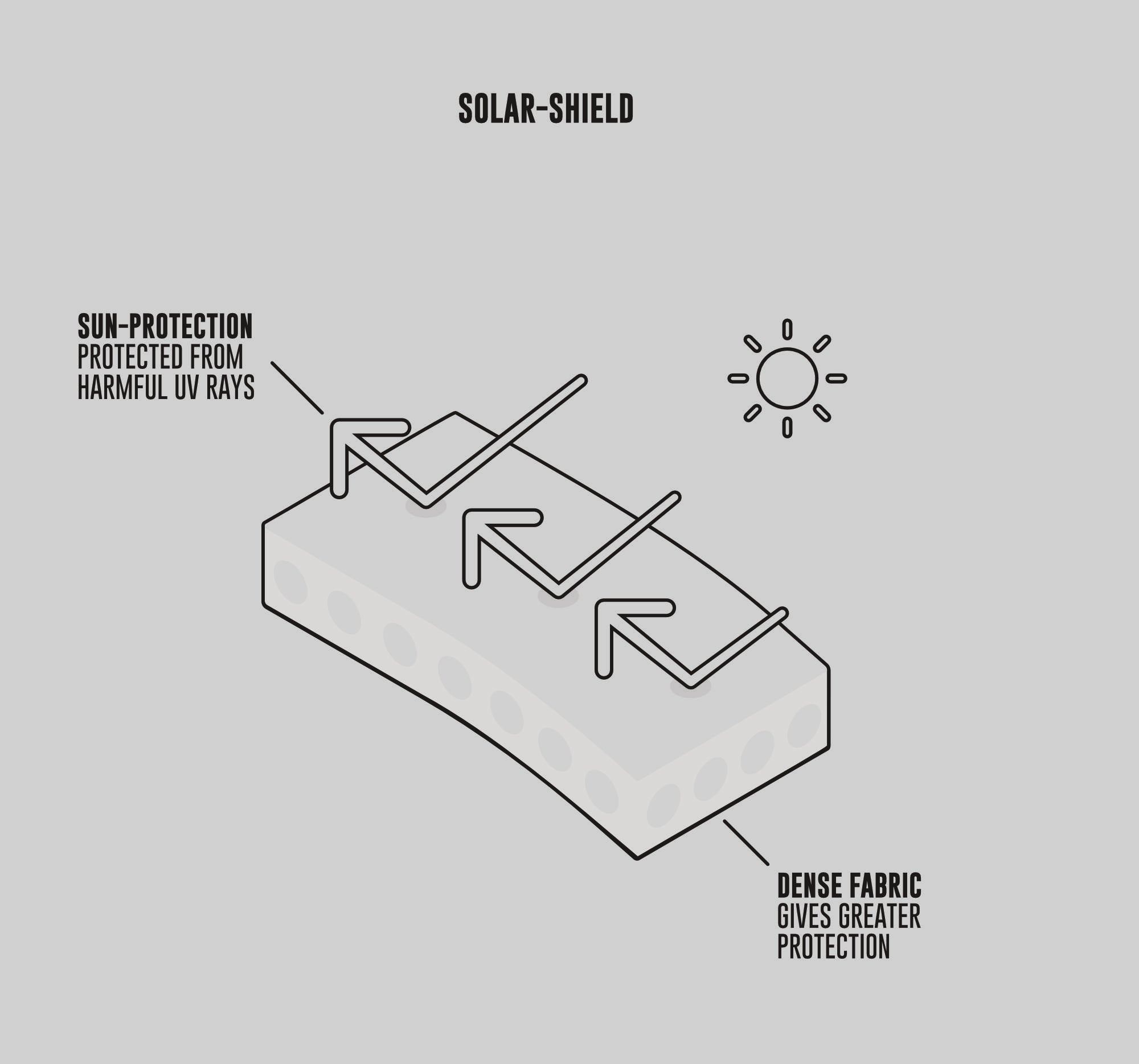 Get out there and enjoy the sun without taking risks. Our SolarShield fabric technology has been tried and tested to give you UPF40+ protection from harmful UV rays.