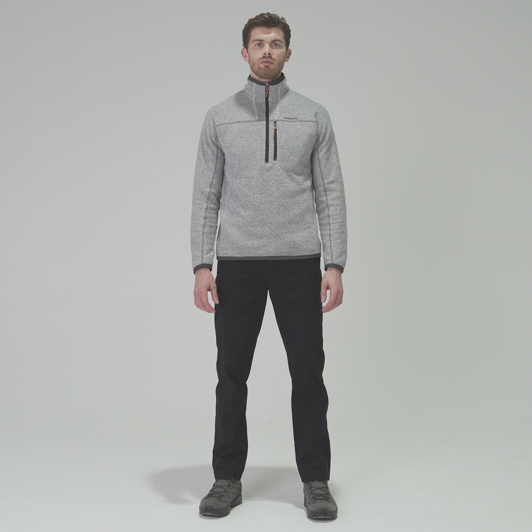Easy-care insulating fleece top made from recycled marled knit-look fabric. Contrast half-zip fastening plus a useful zipped chest pocket, microfleece inner collar and elasticated-bound trim.