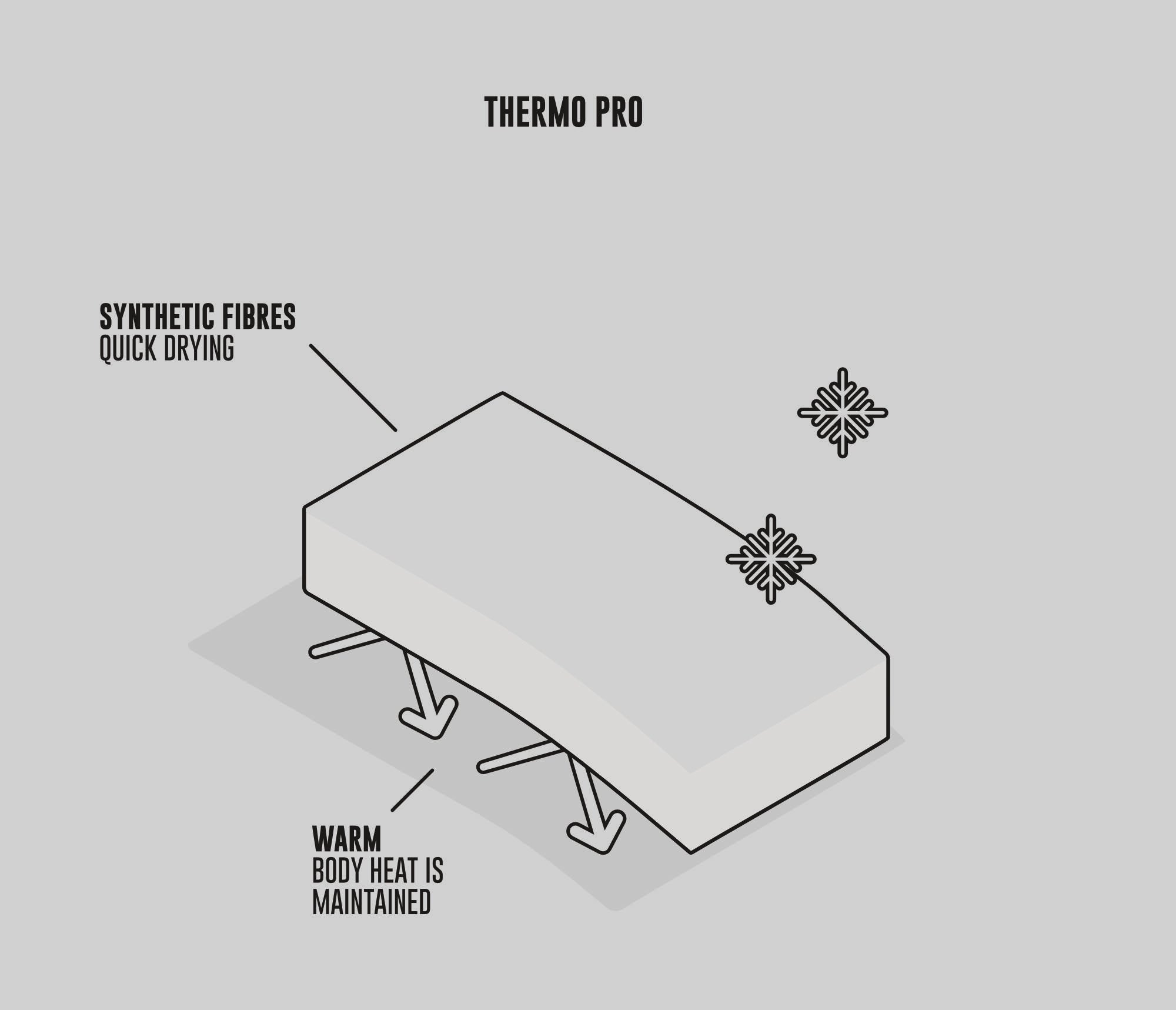 A new insulating technology that provides a viable synthetic alternative to natural down. The innovative ThermoPro fill uses specially constructed fibres to simulate down construction, delivering comparable heat retention properties.