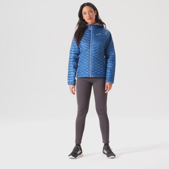 The perfect travel jacket. The Craghoppers best-selling Women's ExpoLite Hooded Jacket is a packable, insulating layer for all adventures and made from recycled materials. Fully equipped with recycled polyester, DWR waterproof finish, and our ThermoPro recycled down-like fill, this champion packs into its own stow pocket to become a travel pillow. When worn, this recycled down-like jacket keeps you warm while being lightweight. Complete with 2 external pockets, a concealed inner zip pocket with RFID protection, and draw cord hem and hood adjusters. Comfortable, warm, compact.