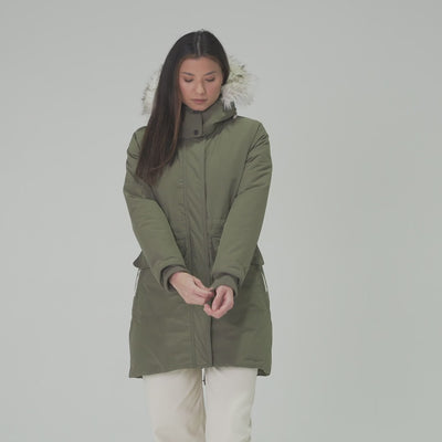 This longer-length insulated waterproof is the ideal choice for cooler conditions. The cotton-touch AquaDry Membrane construction incorporates a layer of high-loft insulation for reliable performance in wind, rain and snow. The faux-fur-trimmed hood features a boucle fleece inner and there are 7 useful pockets, including RFID pocket.