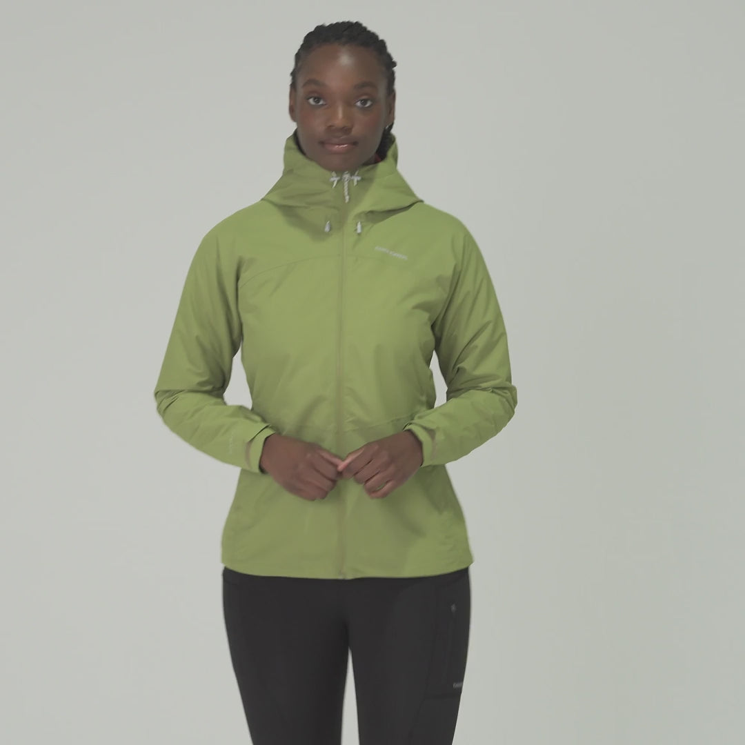 Practical waterproof jacket that's ideally suited to the active trail. The AquaDry Membrane construction with EcoShield DWR includes a grown-on hood and waterproof centre front zip plus 3 zipped pockets. Available in plain and printed options..